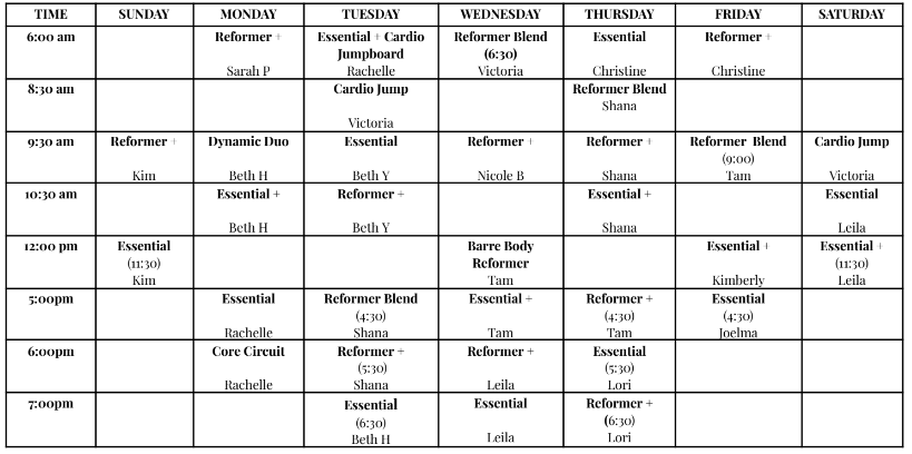 Reformer +: An intermediate class with quick transitions to help guide you from beginner to more advanced using various tools and equipment, while focusing